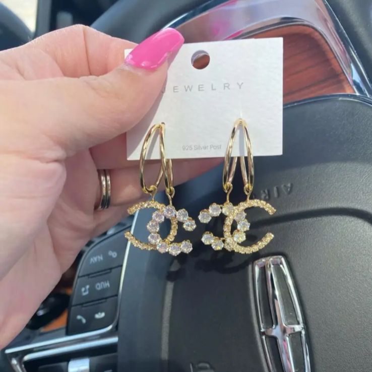 Brinco Duplo C Brilhante (COMPRE 1 PAR LEVE 2)